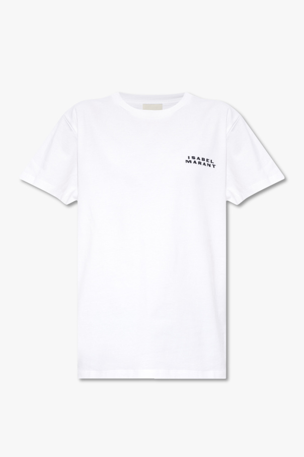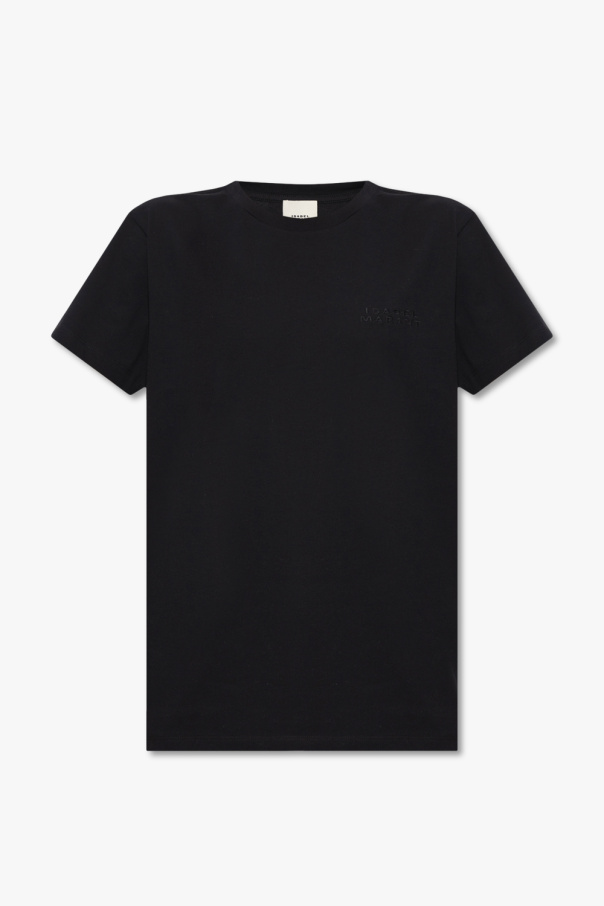 Isabel Marant的黑色'Vidal'棉质T恤。短袖设计,饰有黑色徽标刺绣和罗纹圆领。