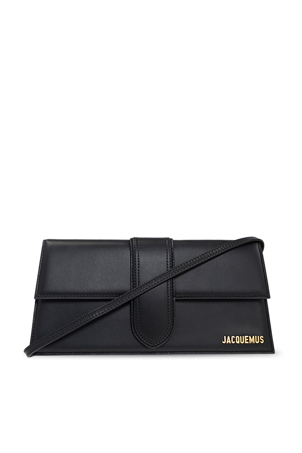 White ‘Le Bambino Long’ shoulder bag from Jacquemus. Crafted from cow leather, this design secures with a magnetic snap and showcases a gold-tone metal logo plaque, a back slip pocket, an adjustable shoulder strap, gold-tone metal hardware and a beige cotton clad interior with one compartment and one slip pocket.