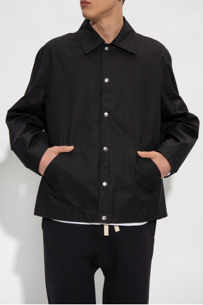 Jil Sander的黑色棉质衬衫。长袖设计,配有按扣和两个插袋。