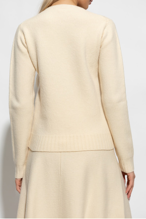 Jil Sander的奶油色羊毛质毛衣。圆领、下摆和袖口饰有罗纹饰边。