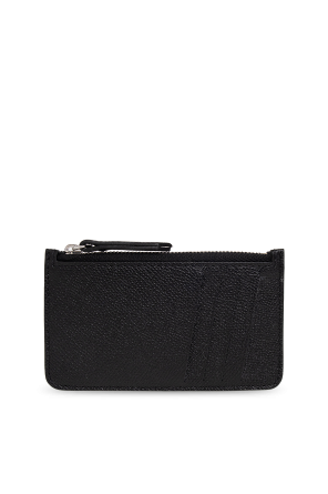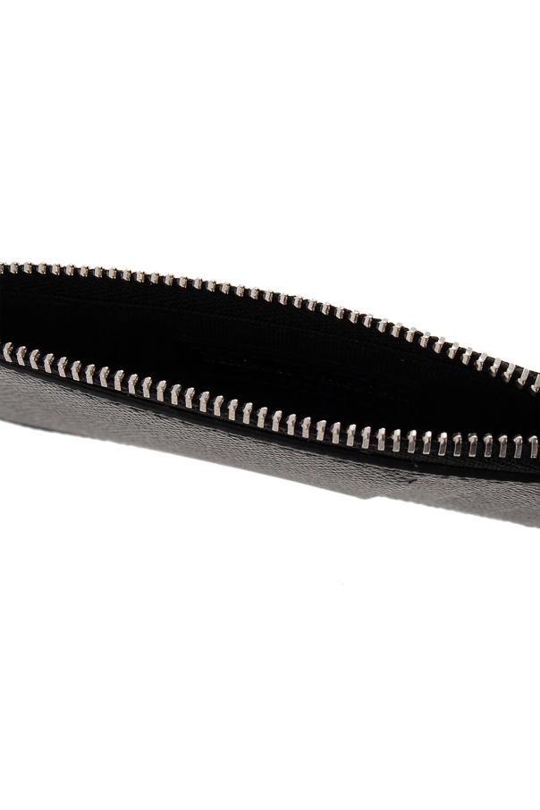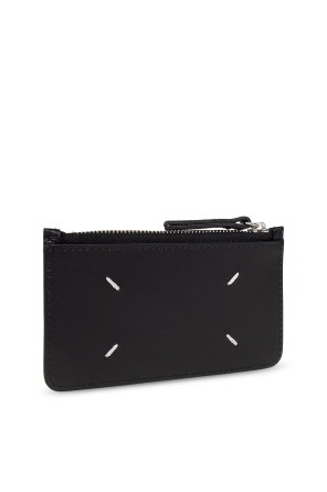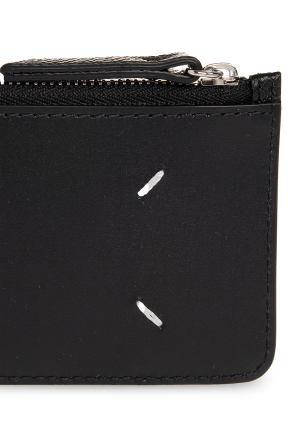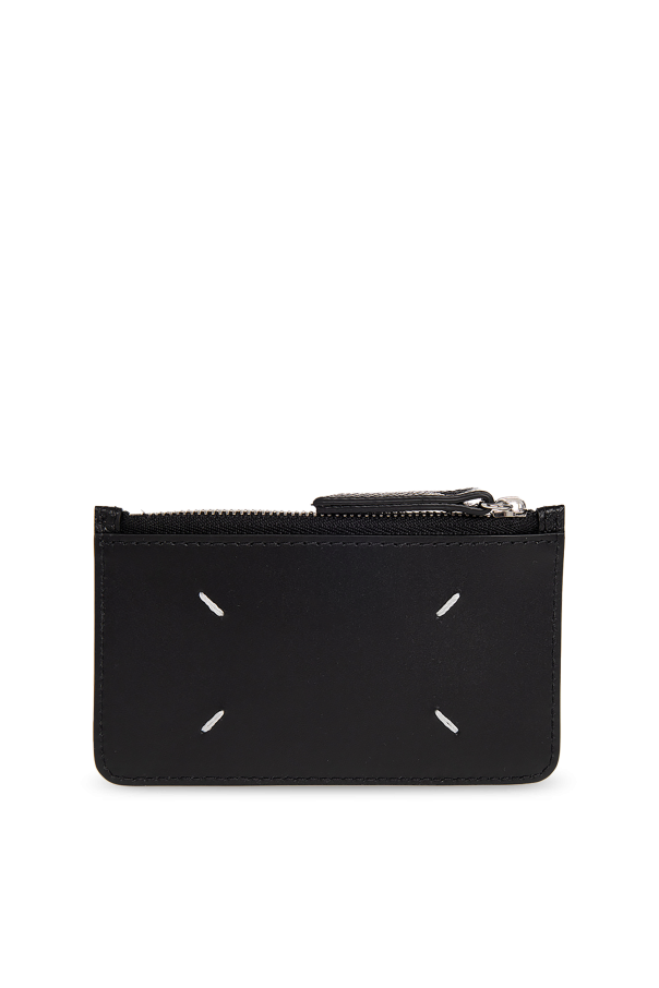 Maison Margiela 黑色卡包,采用小牛皮制成,饰有白色徽标刺绣、拉链口袋、背面有四个卡位和银色金属配件。
