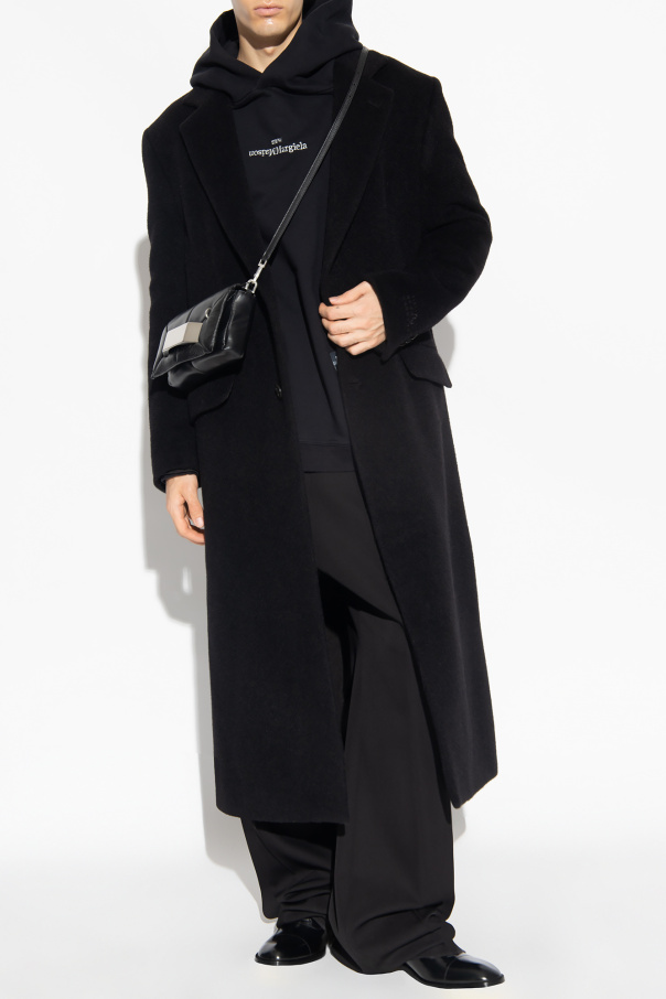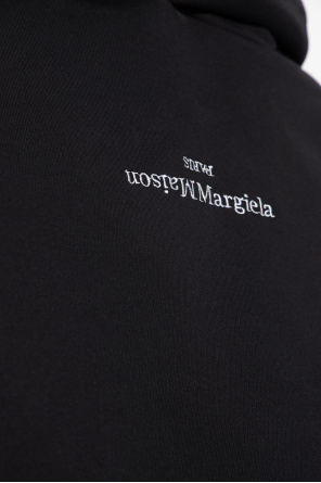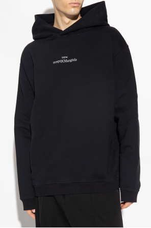 Maison Margiela的黑色连帽衫,采用棉质面料制成,正面饰有白色徽标刺绣,下摆和长袖饰有罗纹,背面饰有品牌标志性的白色四针。