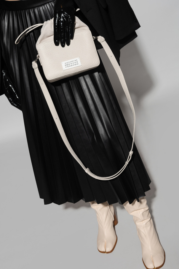 Cream heeled boots from Maison Margiela. Made of leather, this pair features a side zip, the brand’s signature Tabi toe and brown leather sole.