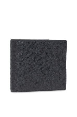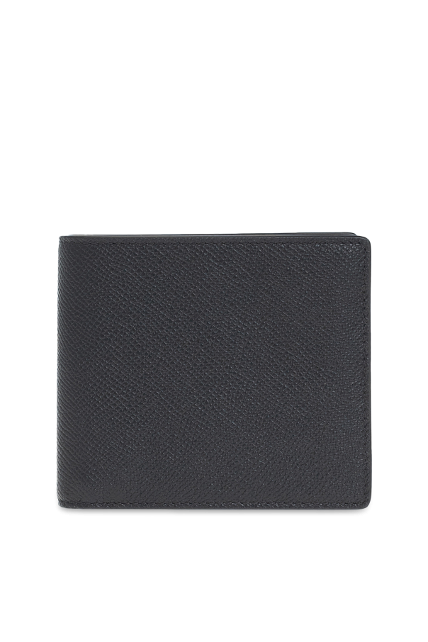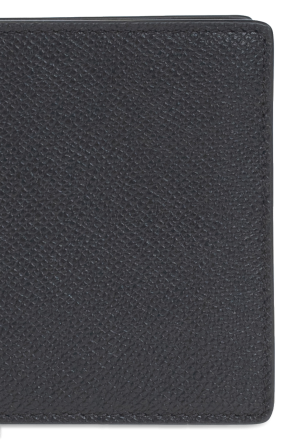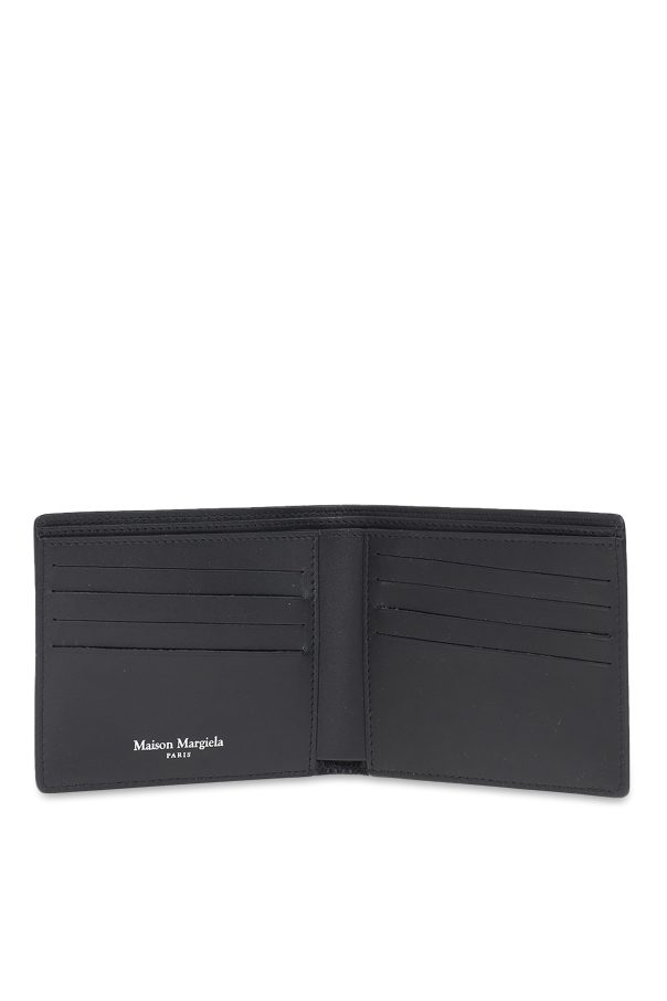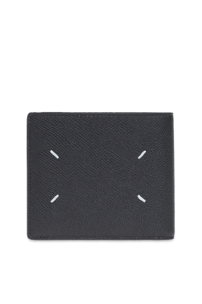 Black bi-fold wallet from Maison Margiela. Made of calf leather, this item showcases the brand's signature contrasting white four-stitches moniker at the back and two bill compartments, two slip pockets and four card slots inside.