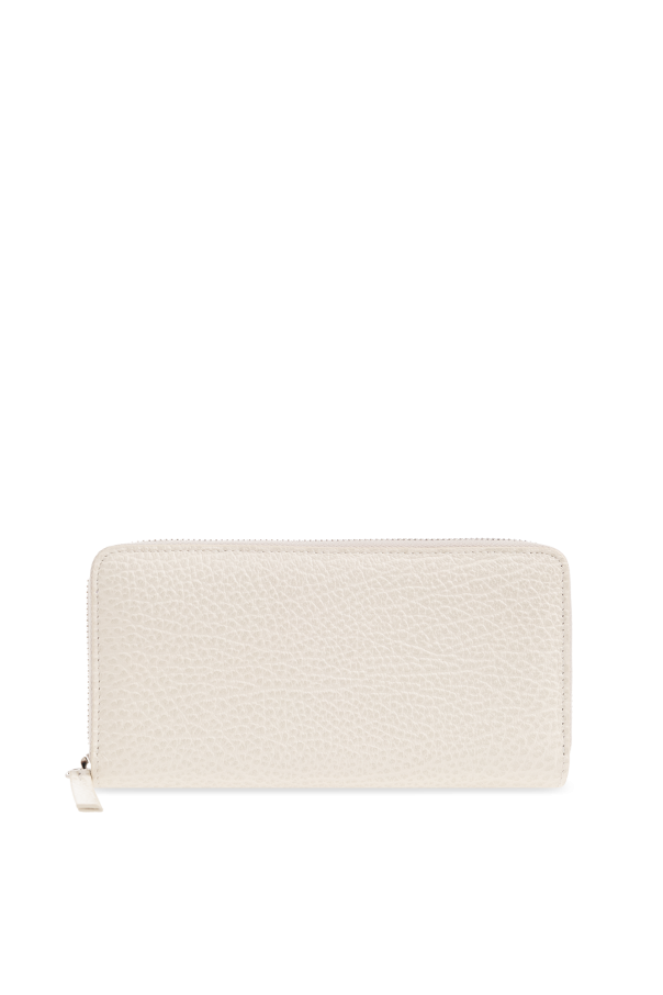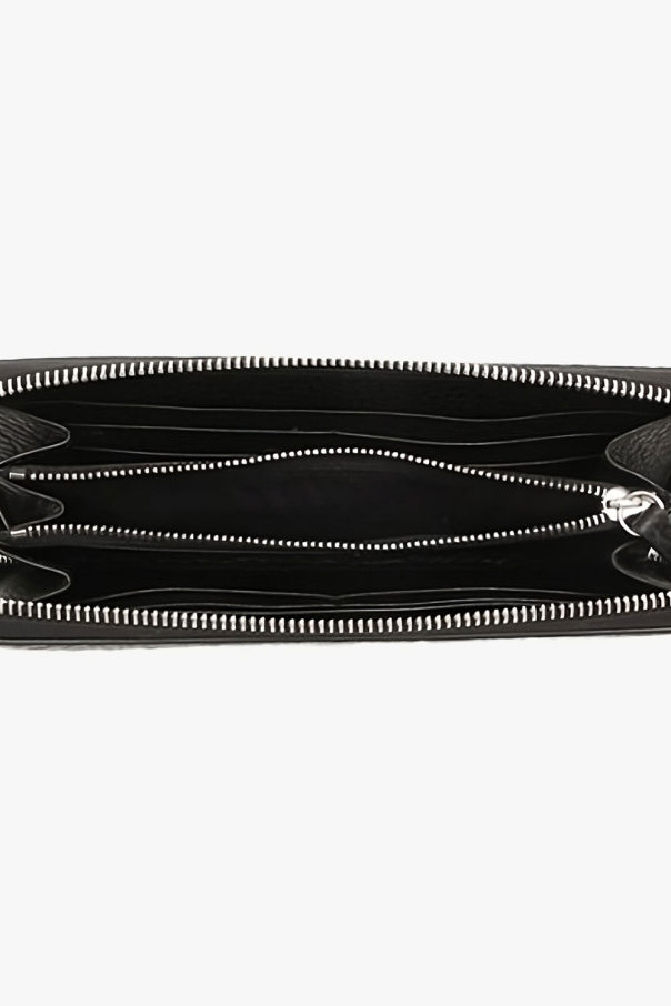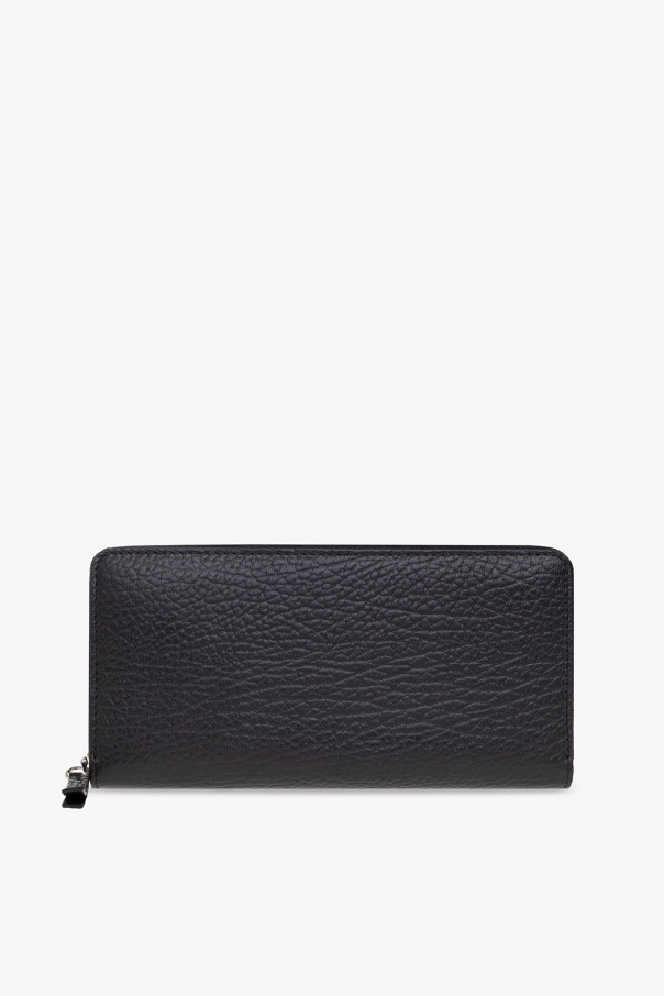 Maison Margiela的黑色钱包,采用粒面皮革制成,配有拉链开合,饰以标志性的白色四针标志、银色金属配件和一个拉链零钱袋、四个插袋和八个卡槽。