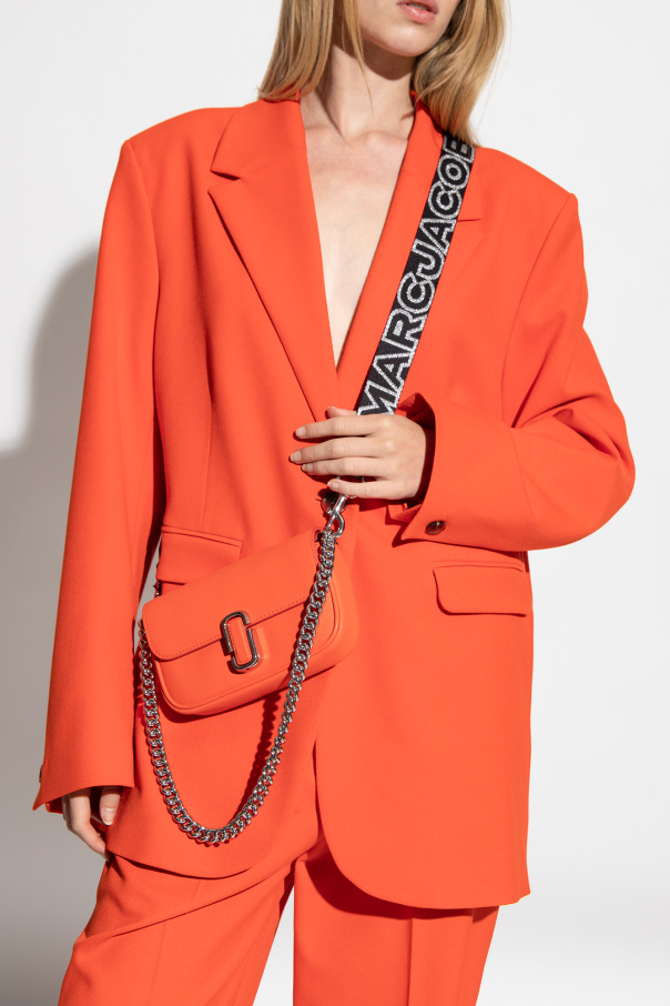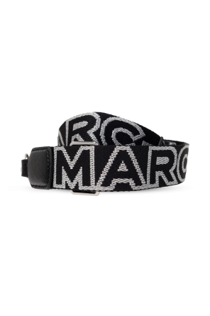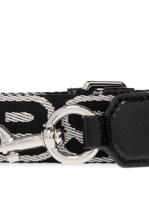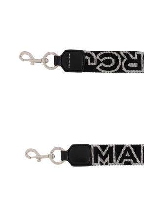 Black adjustable bag strap from Marc Jacobs. Made of fabric with leather trims, this item features a logo embroidery inlaid with gold-tone lurex threads and metal carabiner clips.