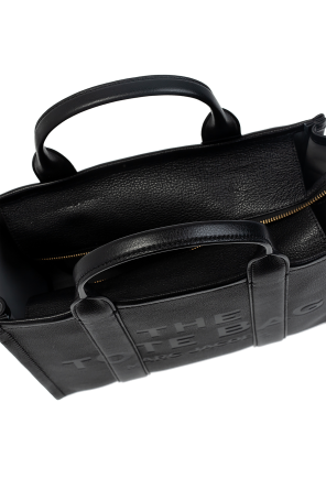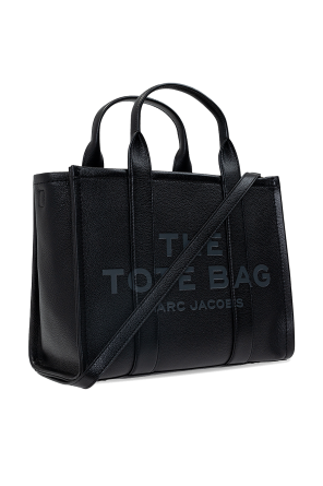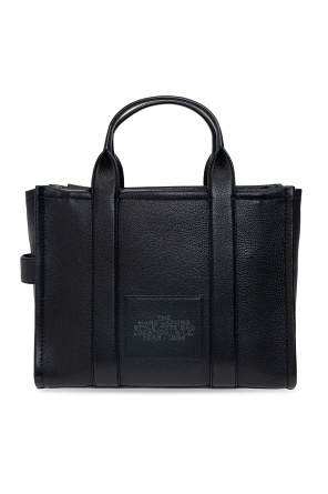 Marc Jacobs (The)的黑色真皮拉链单肩包,饰以灰色压花logo图案。双提手,可调肩带。内有一个主要分层、两个插袋与一个拉链口袋。金色金属配件。