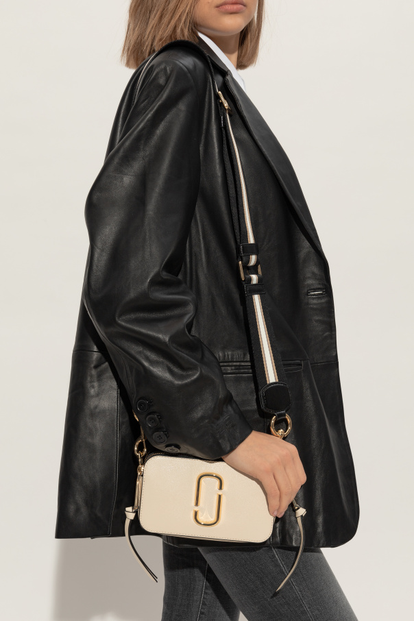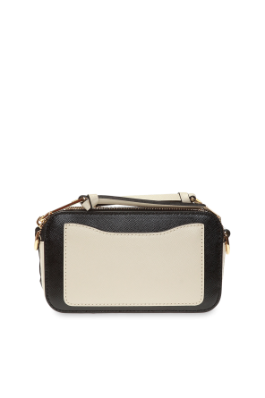 Marc Jacobs的黑色奶油色单肩包。牛皮革制成。附按扣。正面饰有金色调logo金属配件。可调节可拆卸肩带,附logo。内部附两个隔层。
