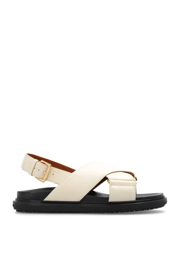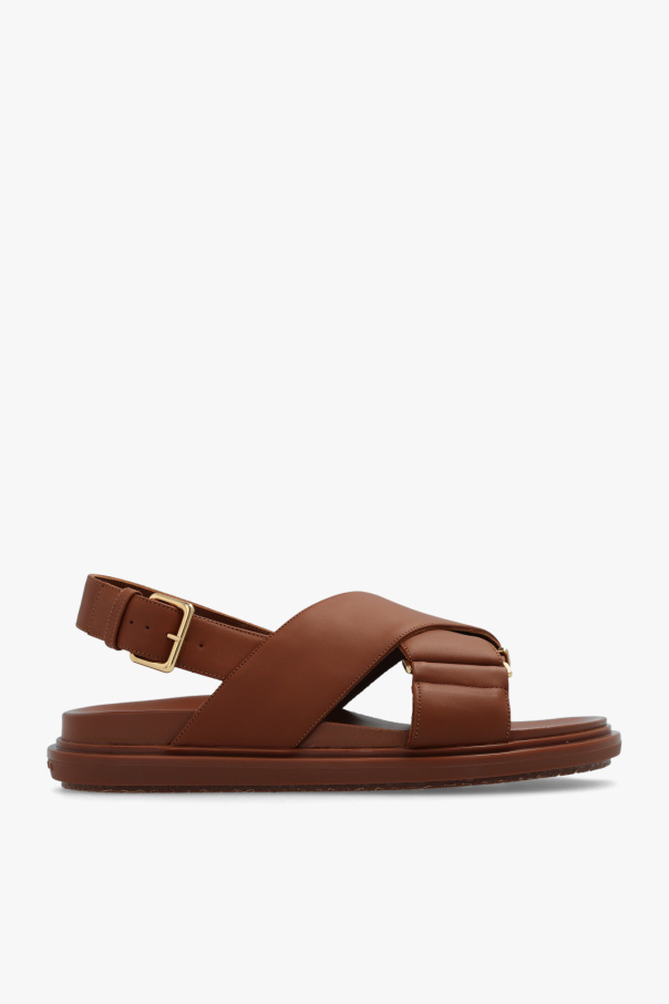 Brown sandals from Marni. Made of leather, this model sits on a brown rubber sole with a jute overlay and features an adjustable buckle strap fastening, gold-tone metal hardware and crisscrossed straps on the front.