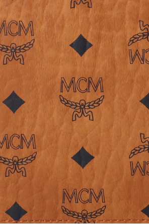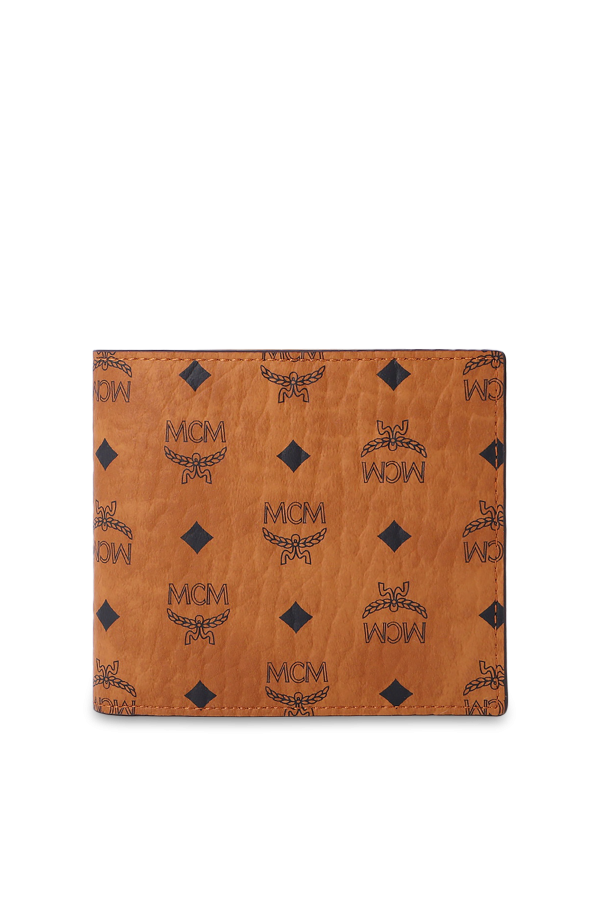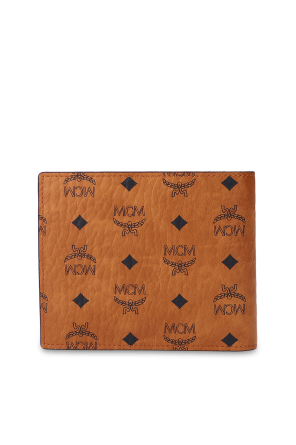 MCM的棕色对折钱包,饰以黑色logo图案。内有四个卡位、两个插袋与一个按扣口袋。