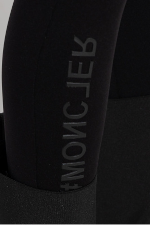 Black leggings from Moncler Grenoble, the ‘Moncler Grenoble Day-Namic’ collection. This pair features an elastic waistband, a zip pocket on the back, logo print and tapered legs.