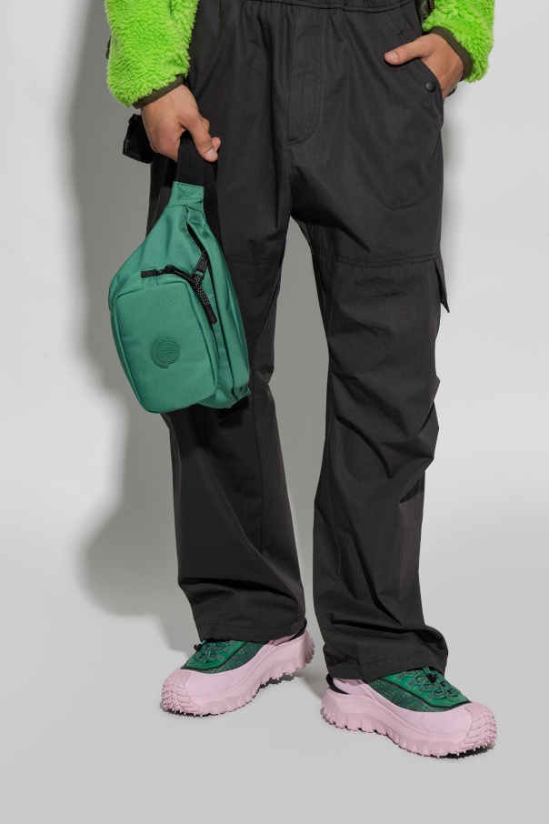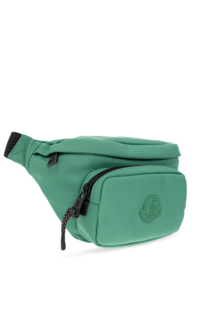 Green belt bag from Moncler. Fastened with a zip, this design features a logo patch, zip pocket on the front and back, adjustable shoulder strap and one internal compartment.