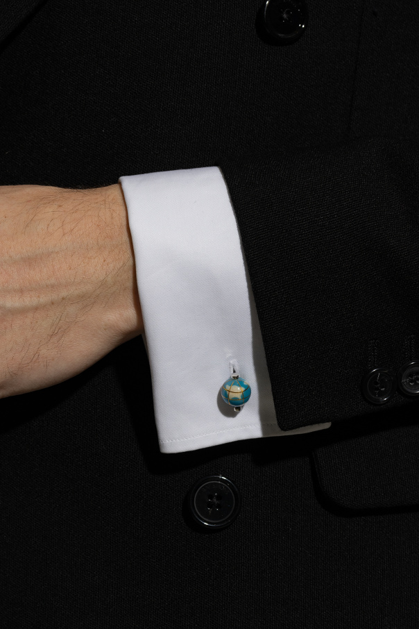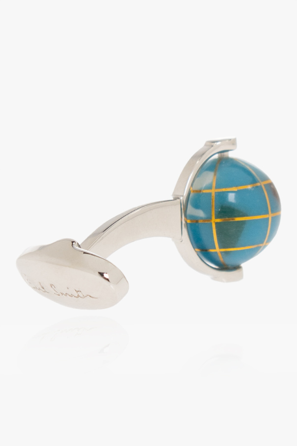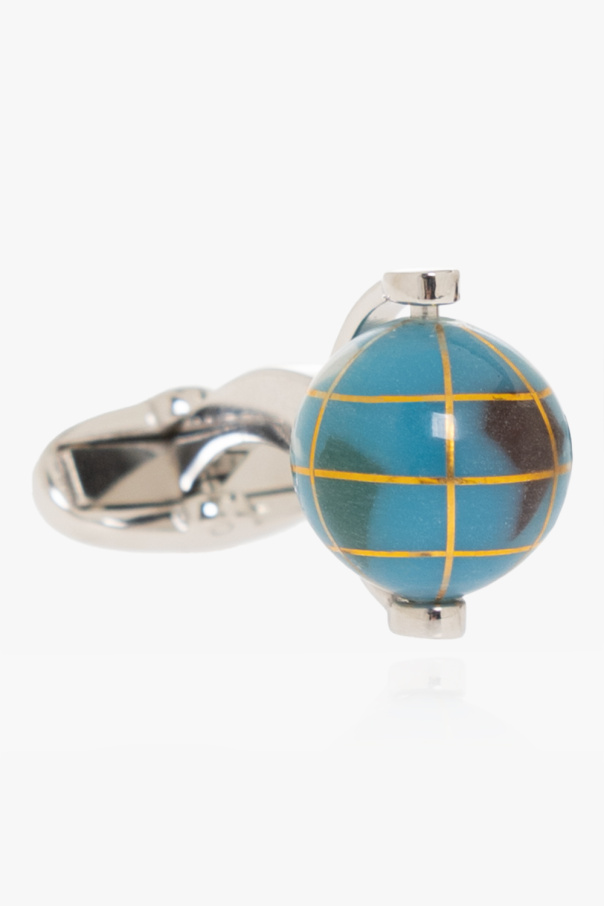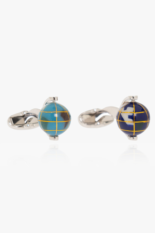 Silver-tone cufflinks with a globe motif from Paul Smith. This pair decorated with multicolored finishes and an engraved logo.