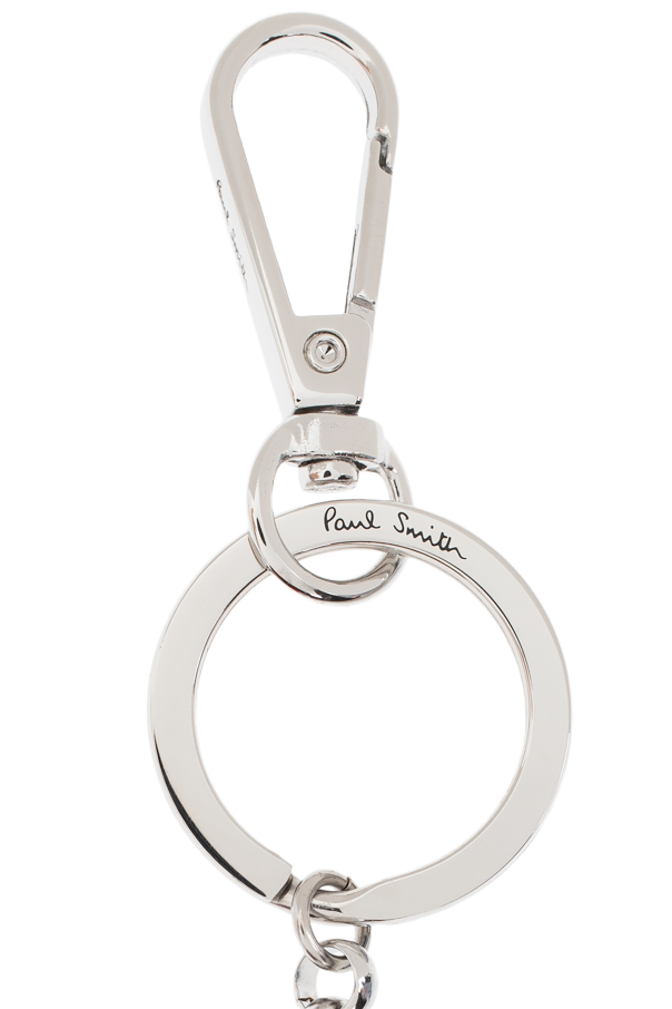 Paul Smith的银色钥匙扣。 此商品配有汽车形挂饰和夹扣。