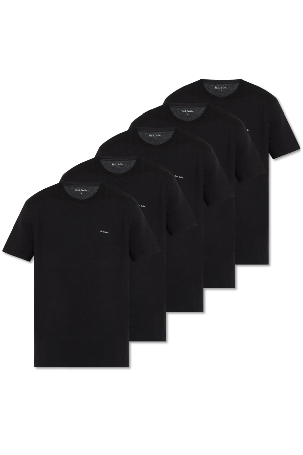 Paul Smith 黑色棉质五件装 T 恤。正面饰有白色印花徽标。圆领。短袖。