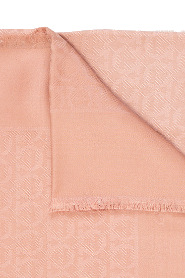 Salvatore Ferragamo的粉红色及奶油色调围巾。羊毛及羊绒质。附logo。饰有毛边。