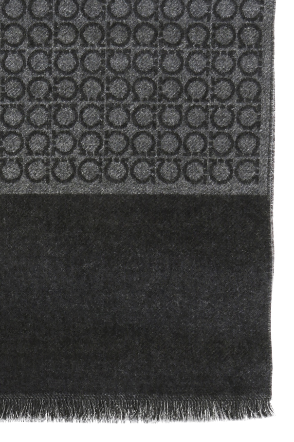 Salvatore Ferragamo的灰色logo羊毛围巾。 毛边。