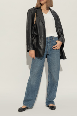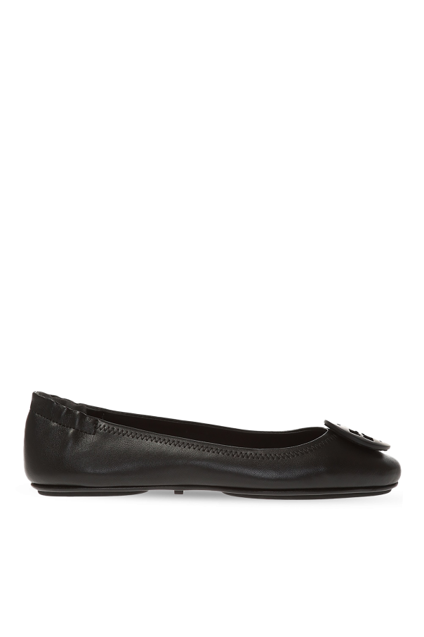 Tory Burch的黑色真皮平跟鞋,饰以logo贴饰。黑色橡胶鞋底。