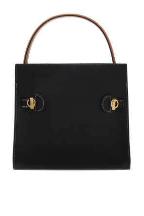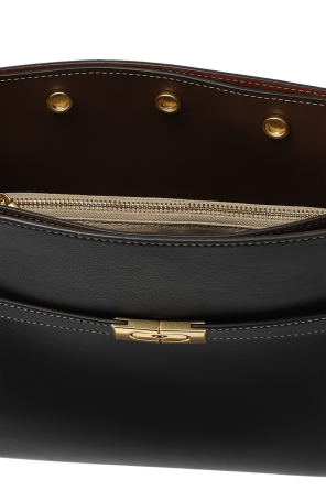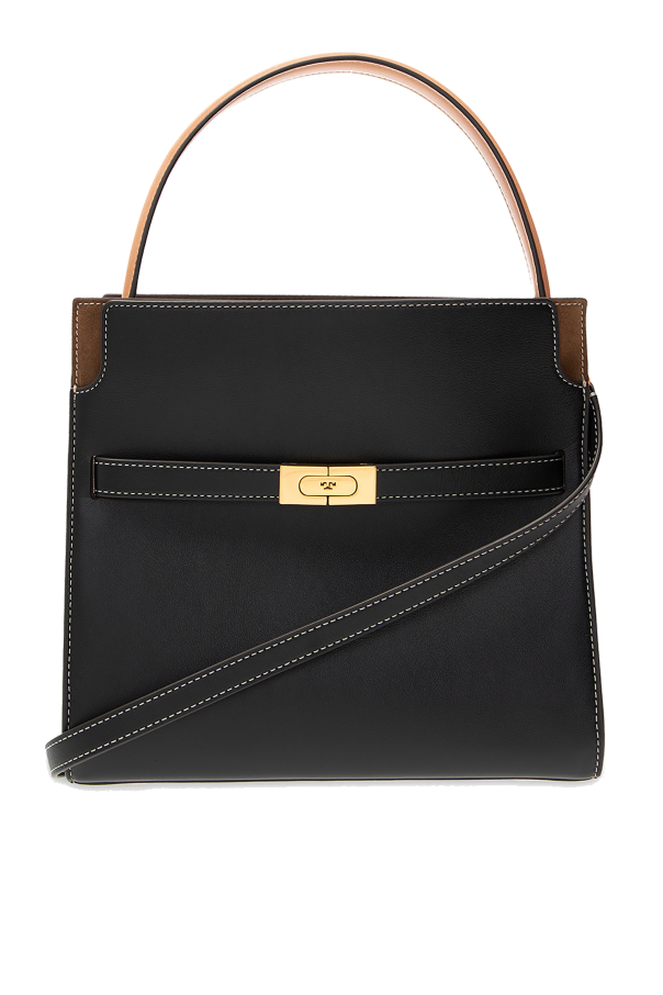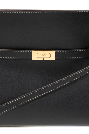 Tory Burch的棕色真皮Lee Radziwill单肩包,logo压花饰扣开合。弧状提手,可拆卸肩带。内有三个分层、一个拉链口袋。内衬采用织物和皮质制成。金色金属配件。附有吊牌。