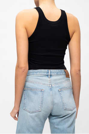 Toteme的黑色无袖上衣。罗纹装饰。棉质。无袖。圆领。