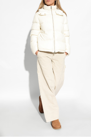 UGG的浅棕色W Mini Bailey Bow II麂皮雪鞋,奶油色羊毛内层,饰以饰锋线与棕色蝴蝶结。后面搭配米黑白色logo贴花。米色EVA泡棉鞋底。