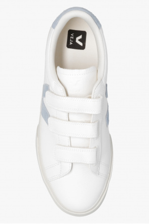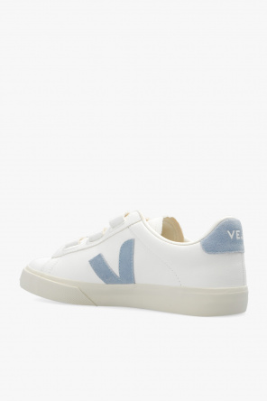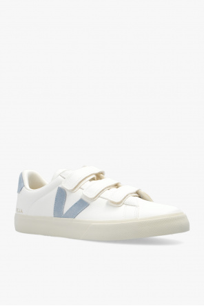 White 'Recife' sneakers from Veja. Crafted from chrome-free leather, this model features an embossed logo on the tongue, a triple velcro closure, organic cotton shoelaces and the brand's signature light blue logo patch in rubber and rice waste. The mesh inner lining made from recycled materials was developed to acquire a better resistance to friction. The organic-sourced and recycled insole consists of sugar cane, Amazon rubber, organic cotton and recycled EVA. It is set on a cream rubber sole made from organic and recycled materials. This leather undergoes an innovative tanning process where no chrome, heavy metals or dangerous acids are involved. By simplifying the tanning process, the use of chemicals and energy is limited, the use of water is reduced by about 40% and the use of salt by 80%. After tanning, the water is recyclable.