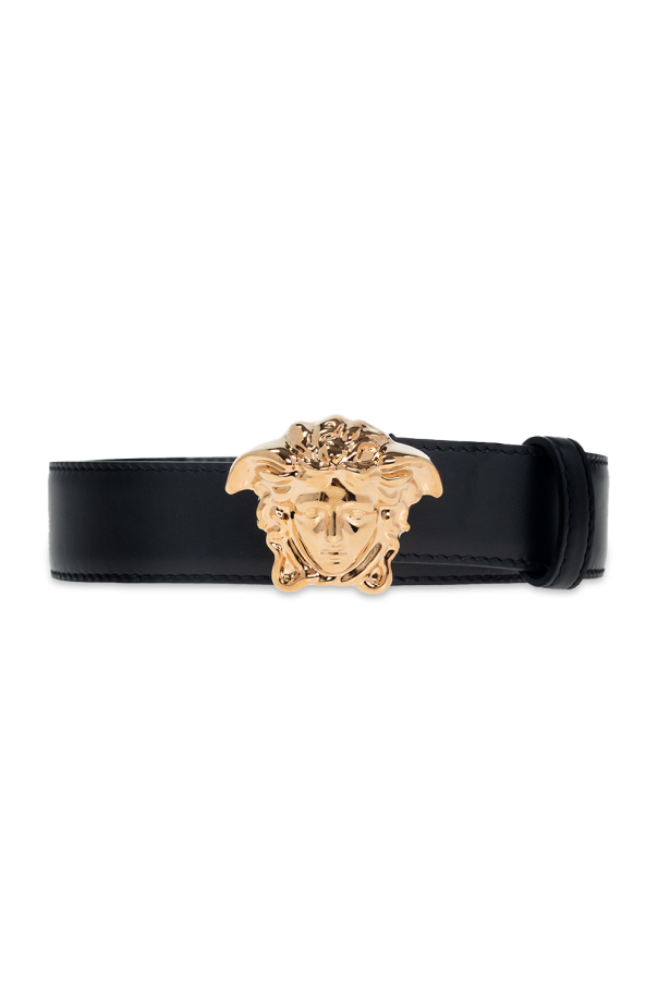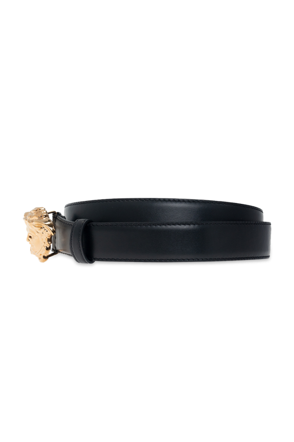 Versace的黑色腰带,采用小牛皮制成,饰有装饰性金色搭扣,饰有品牌标志性的美杜莎。