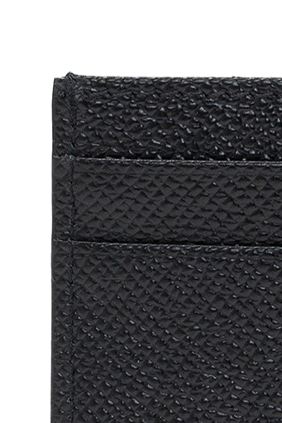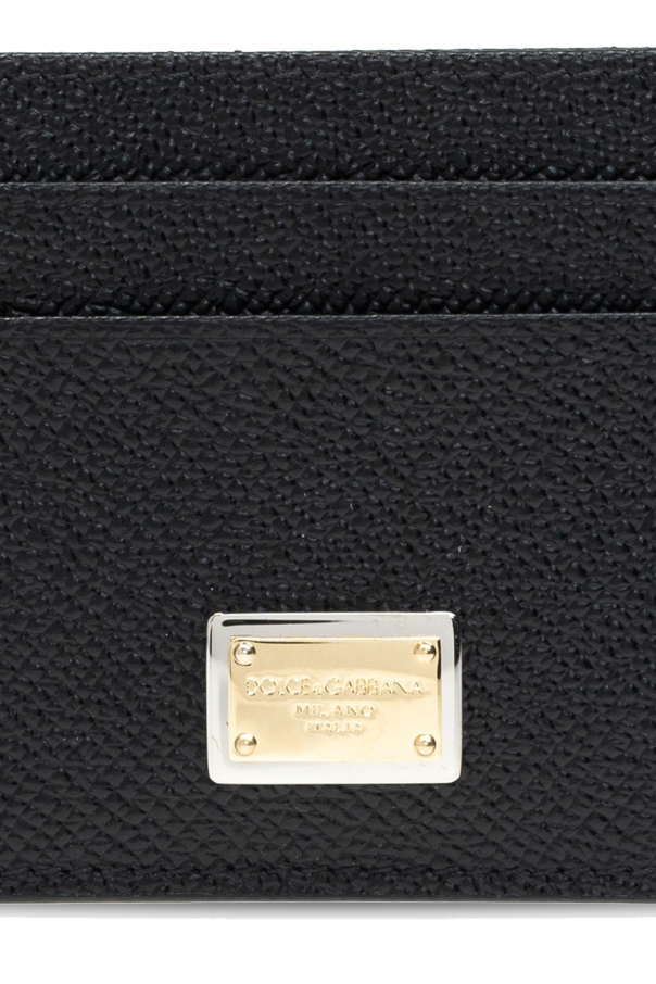 Dolce & Gabbana的黑色小牛皮卡包,饰以logo压花的贴饰,设有四个卡位与一个内袋。金银色金属配件。