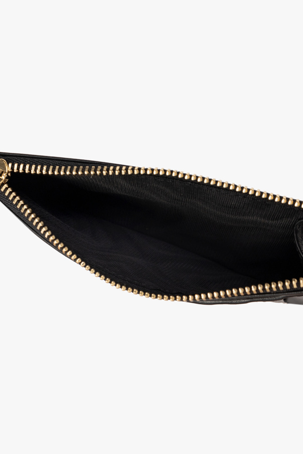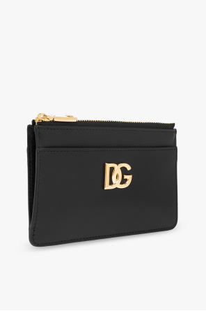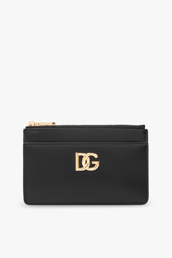 Black card holder from Dolce & Gabbana. Made of leather, this item features a logo detail, five card slots, gold-tone metal hardware and one internal compartment with one zip pocket.