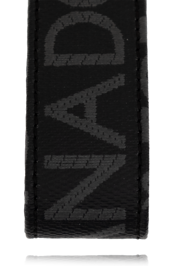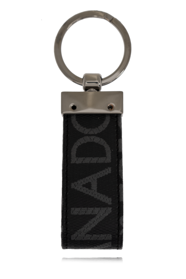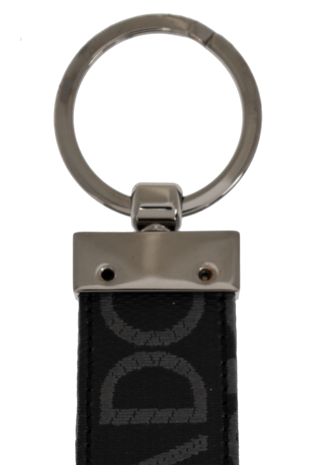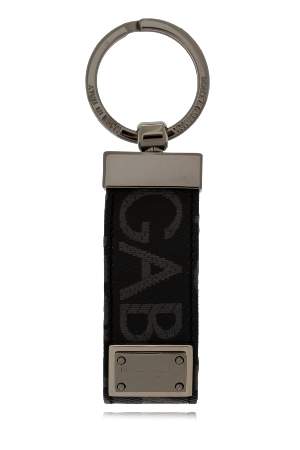Silver-tone keyring with a black pendant and logo-engraved patch from Dolce & Gabbana.