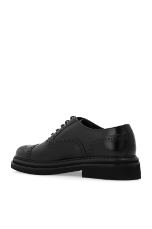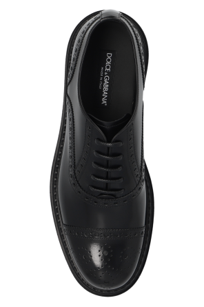 Black Oxford shoes from Dolce & Gabbana. Made of leather with a round toe, this lace-up model sits on a black rubber sole and features brogue detailing.