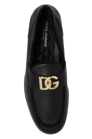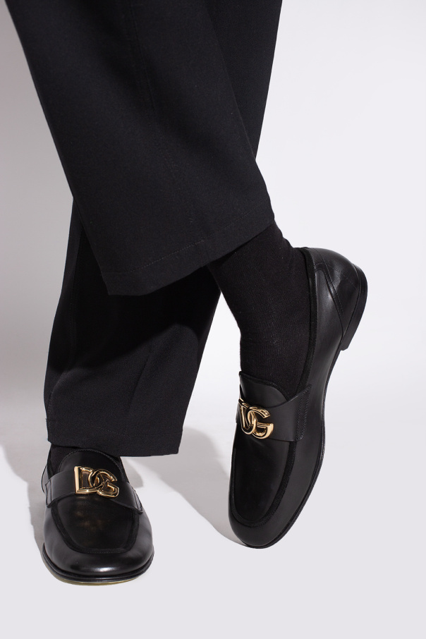 Dolce & Gabbana的黑色皮革质乐福鞋。附金色金属徽标贴花。栗色和黑色皮革鞋底。