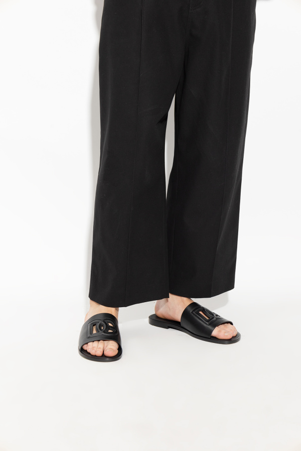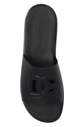 Dolce & Gabbana 黑色 Leather slides with logo