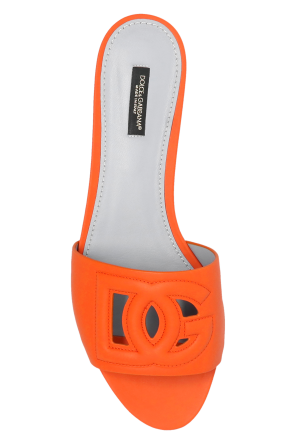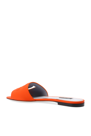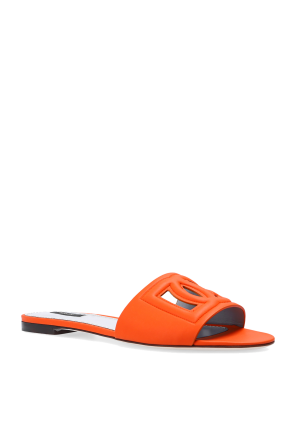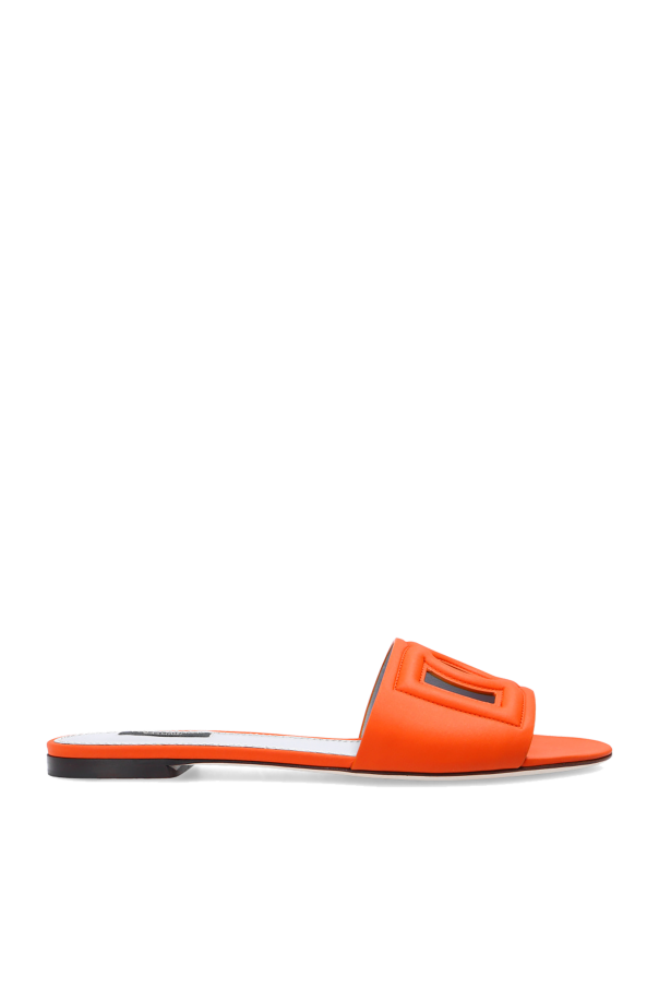 Dolce & Gabbana的橙色真皮拖鞋,饰以logo图案。米色皮质鞋底。