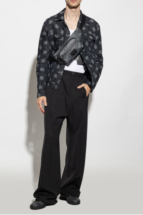 Black and grey ‘Portofino’ sneakers from Dolce & Gabbana. Crafted from coated canvas, this lace-up model sits on a black rubber sole and showcases a logo pattern and tactile branding at the back.