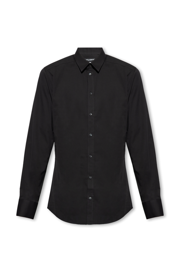 Dolce & Gabbana的经典黑色衬衫,采用棉质面料制成,纽扣开合,长袖配有纽扣袖口。