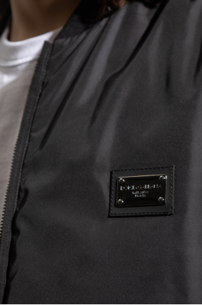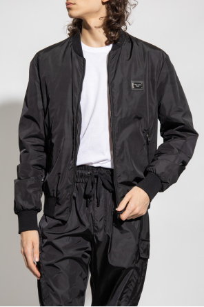 Black bomber jacket from Dolce & Gabbana. Emblazoned with a logo patch, this style features a zip fastening, two zip pockets and ribbed trims on the standing collar, bottom hem and cuffs.