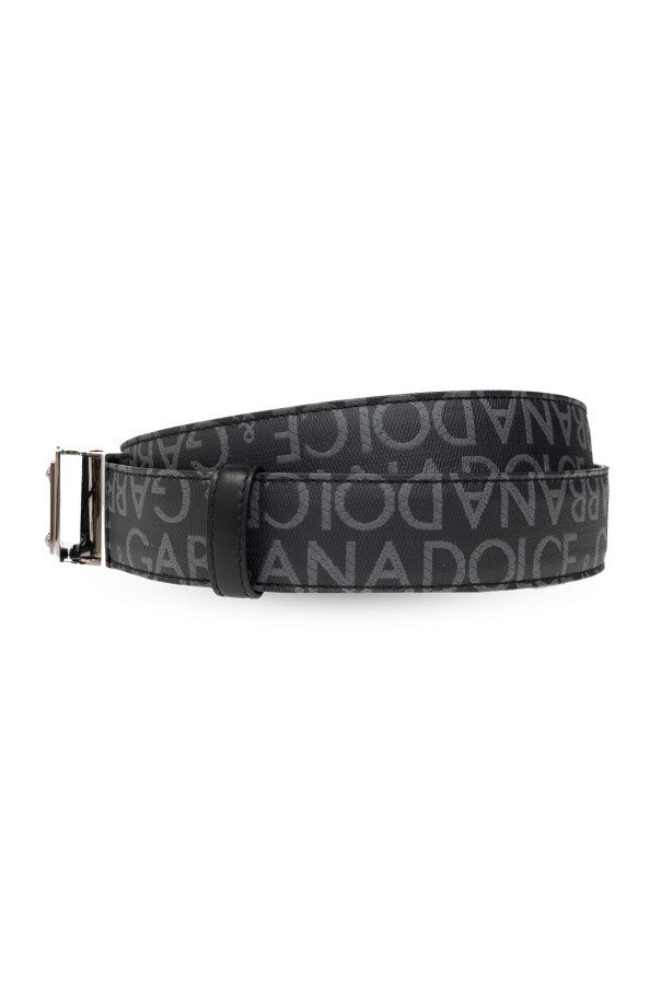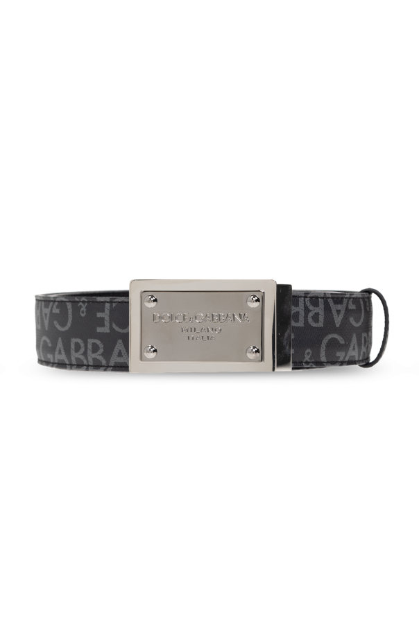 Dolce & Gabbana的黑色和灰色腰带,采用小牛皮制成,配有银色搭扣。