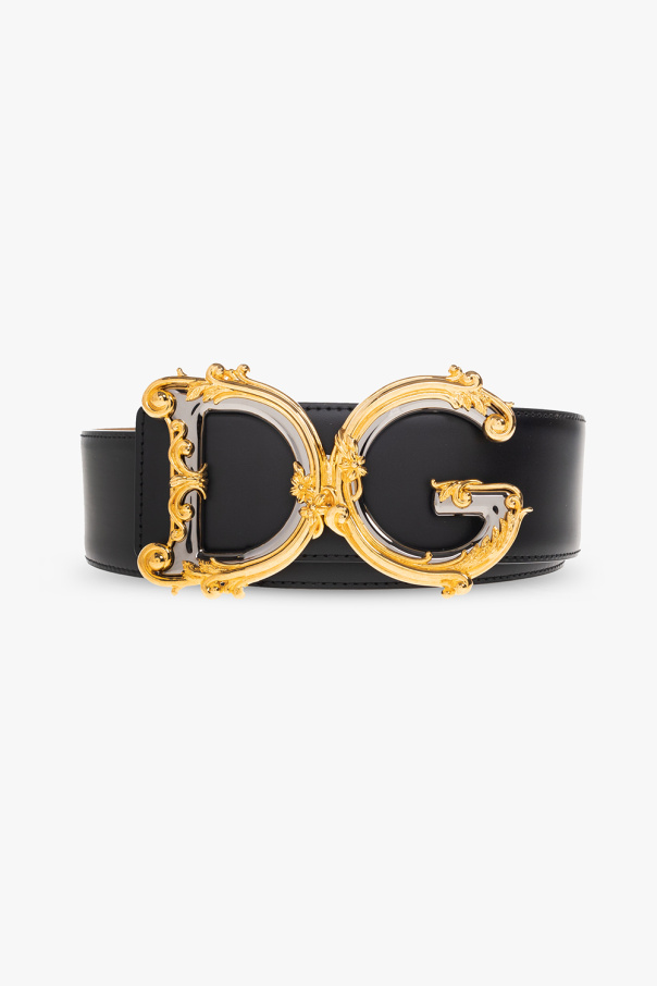 Dolce & Gabbana 的黑腰带。由小牛皮材质制成,附金色和银色金属徽标搭扣。