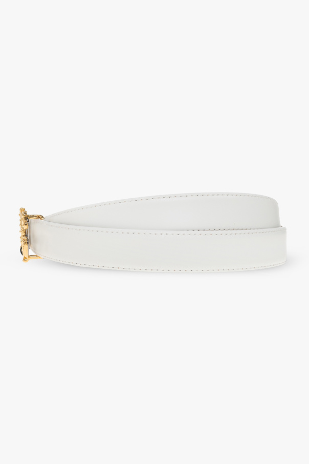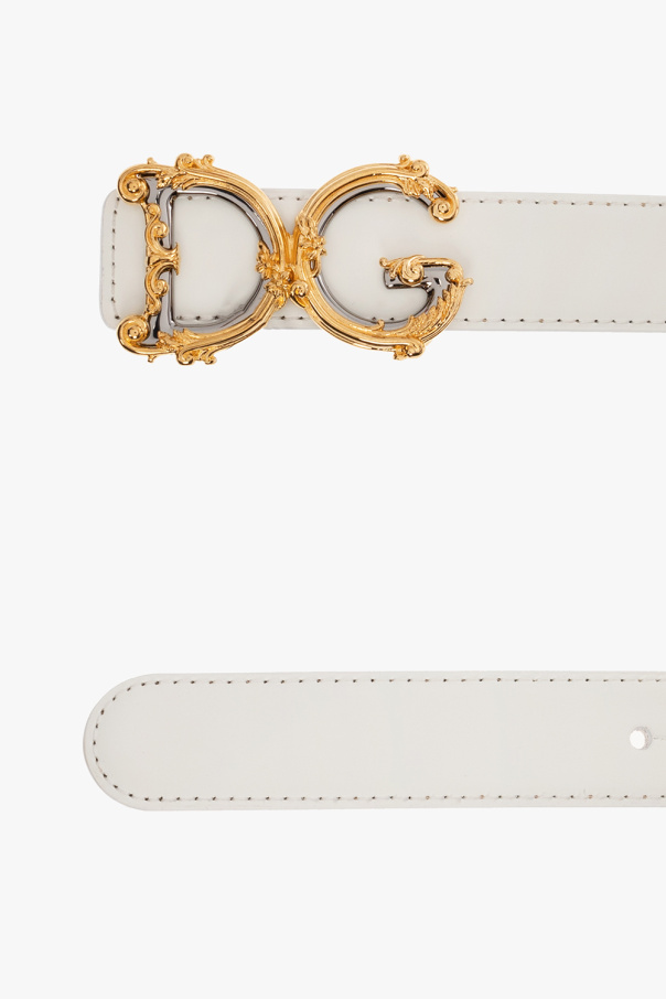 Dolce & Gabbana 的白色腰带。由小牛皮材质制成,附金色和银色金属徽标搭扣。