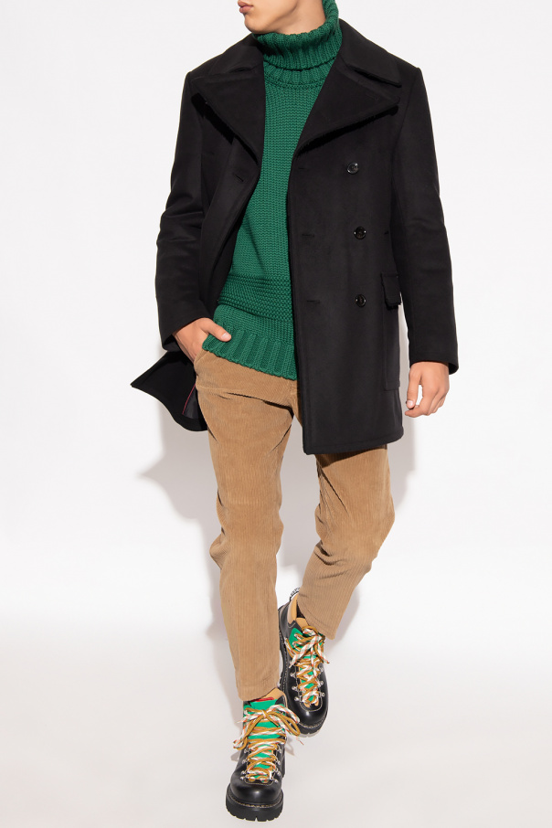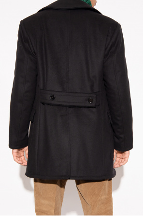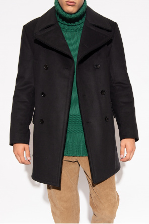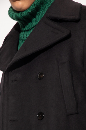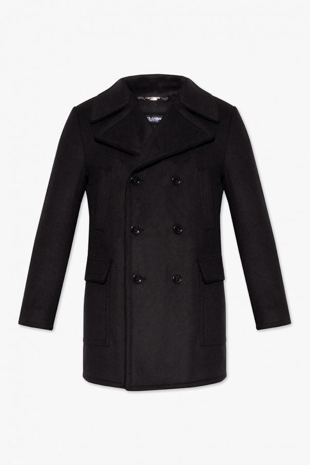 Black double-breasted coat from Dolce & Gabbana. Crafted from wool, this garment features button fastenings, raw-trimmed lapels, four snap-fastened pockets, including two with flaps, long sleeves and single rear vent.