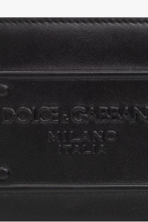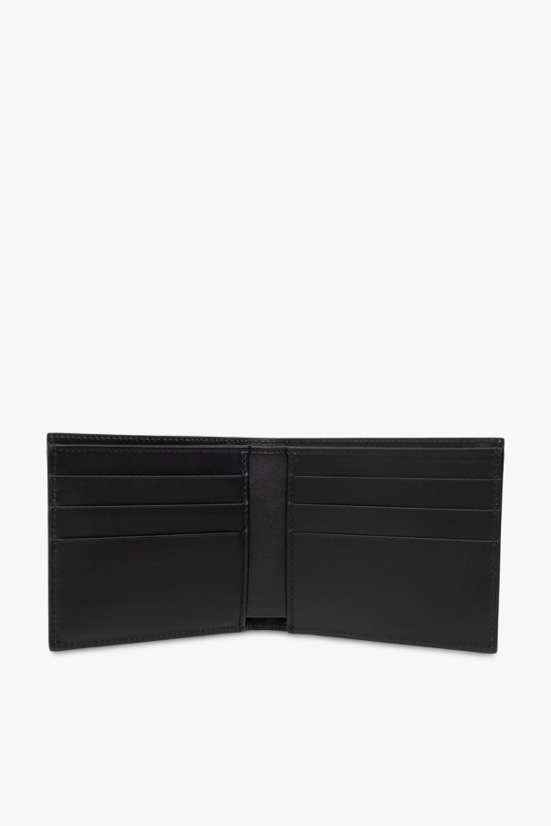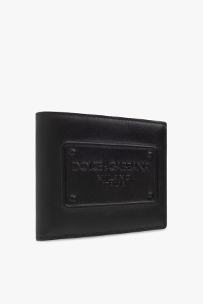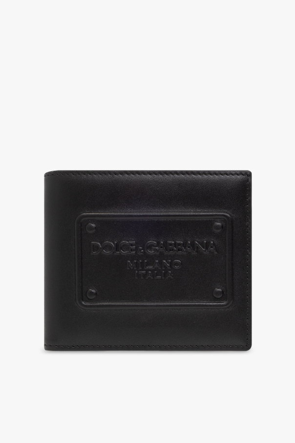 Black bifold wallet from Dolce & Gabbana. Crafted from calf leather, this item features a raised logo and has one bill compartment, two slip pockets and six card slots inside.