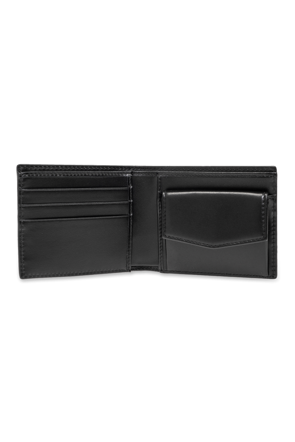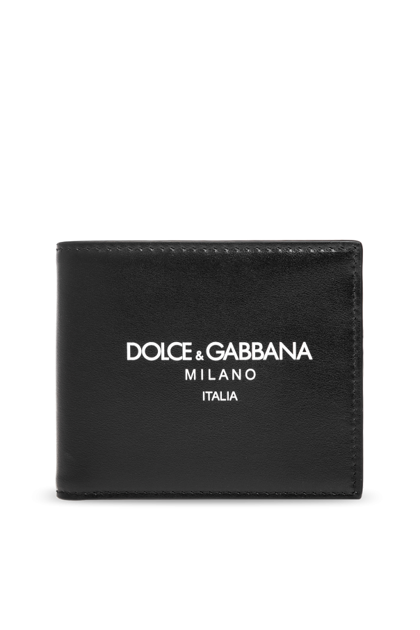 Black folding wallet from Dolce & Gabbana. Made of leather, this item features a printed white logo on the front as well as one bill compartment, one zipped coin pocket, two slip pockets and three card slots inside.
