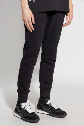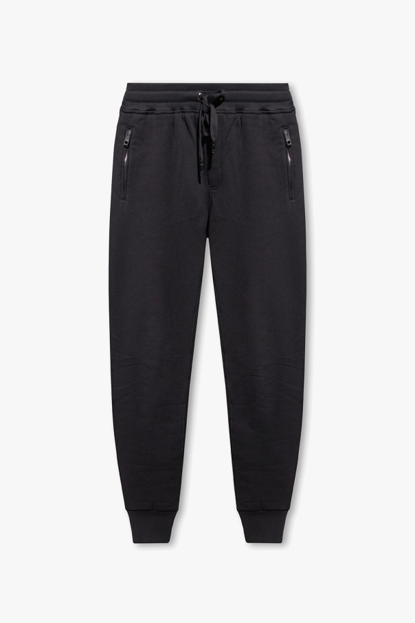 Black sweatpants from Dolce & Gabbana. Made of cotton, this pair features a drawstring waist, two zip pockets, elasticated cuffs and a back logo appliqué.