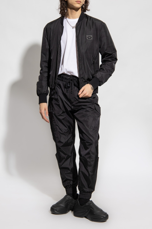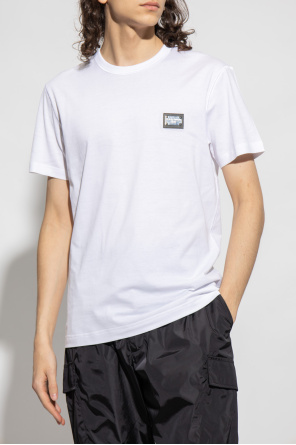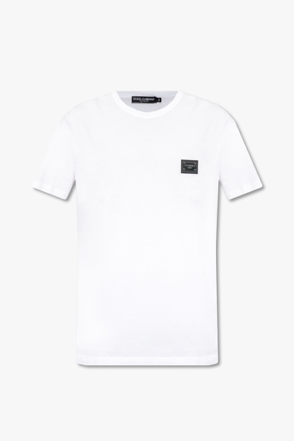 Dolce & Gabbana的白色棉质圆领T恤。短袖。正面饰有银色和黑色徽标贴花。