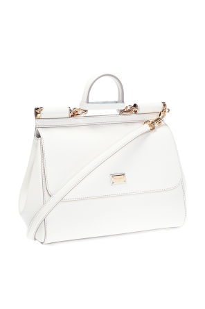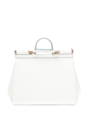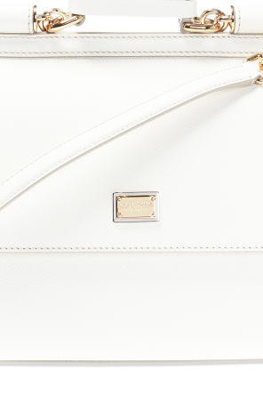 这款奶油色Sicily单肩包来自Dolce & Gabbana,采用粒面小牛皮制成,饰以标识镌刻的金属贴饰,配有按扣开合、一根弧状手柄、可拆卸肩带和棕色豹纹印花的衬里;内有一个主要分层、一个插袋、一个拉链口袋和一个卡位。金色金属配件。