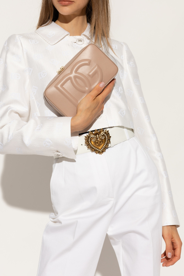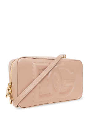 Beige shoulder bag from Dolce & Gabbana. Crafted from leather, this design secures with a two-way zipper and showcases a tactile logo on the front. It is complete with a detachable and adjustable shoulder strap, one back slip pocket, gold-tone metal hardware and one internal compartment with one zip pocket and one snap-fastened pocket.