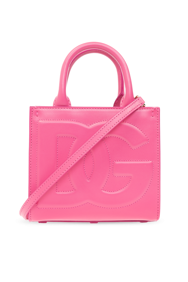 Pink 'DG Daily Mini' shoulder bag from Dolce & Gabbana. Made from leather, this design showcases a raised logo. It is complete with a detachable and adjustable shoulder strap, two half-round handles, gold-tone metal hardware and one internal compartment with one card slot, one slip pocket and one zip pocket.