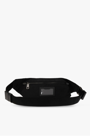 Black ‘Sicilia DNA’ belt bag from Dolce & Gabbana. Fastened with a two-way zip, this design features a white logo appliqué, front and back pocket, one slip pocket, adjustable buckle strap and one internal compartment.