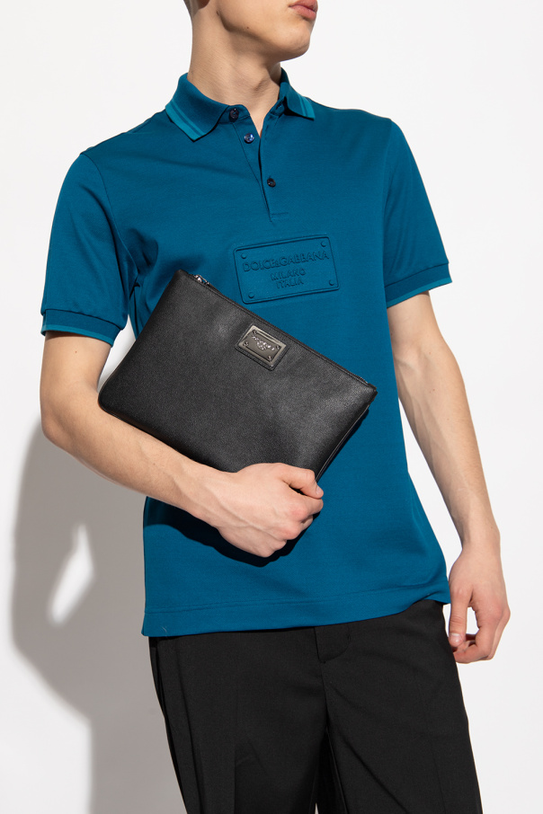 Black handbag from Dolce & Gabbana. With a calf leather front panel and technical material trim at the back, this design features a zip fastening, a silver-tone metal logo plaque with an engraved logo on the front, silver-tone metal hardware and one internal compartment with a slip pocket.
